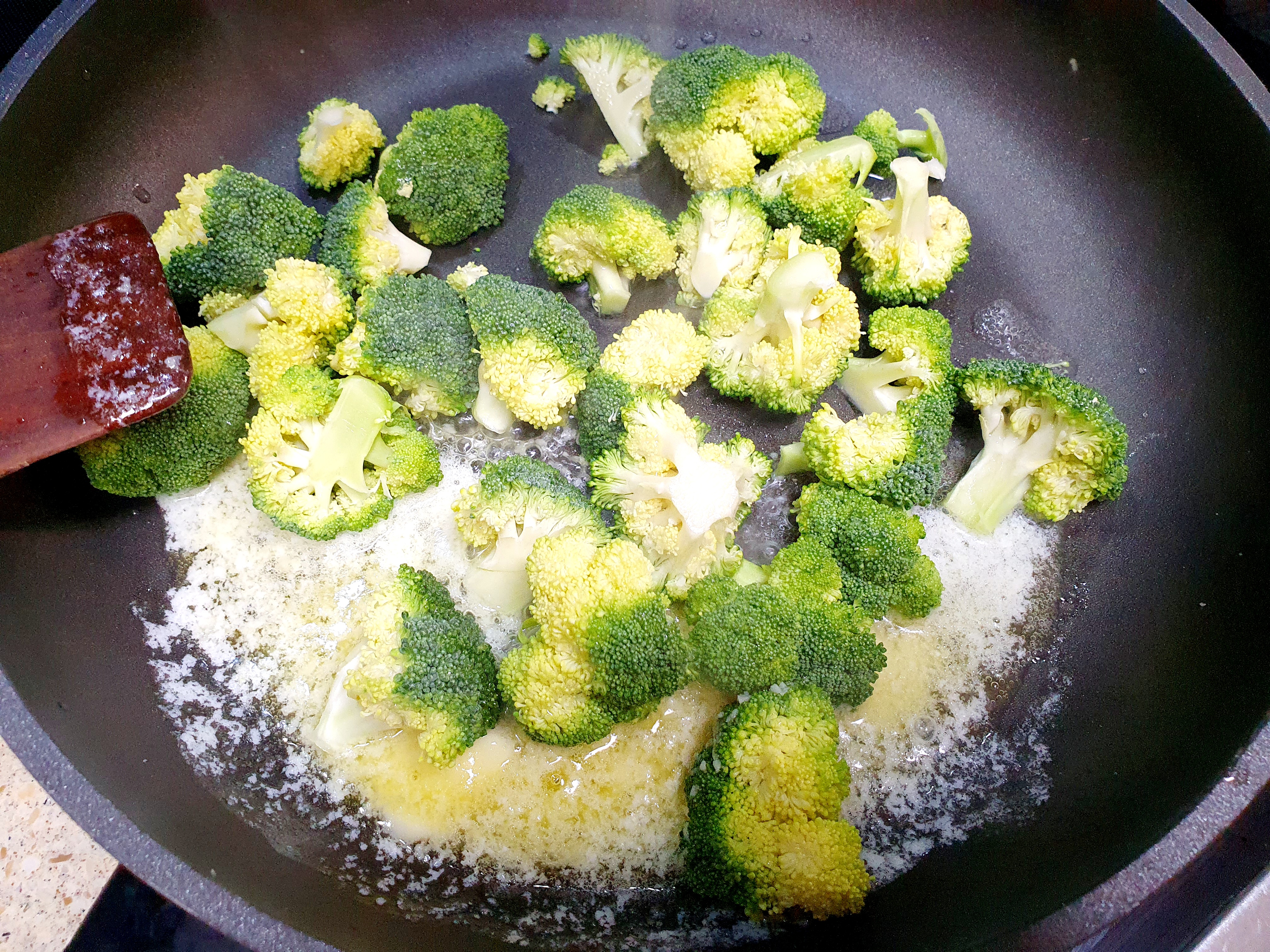 마늘향이 올라오면 브로콜리를 넣고 볶은 뒤에